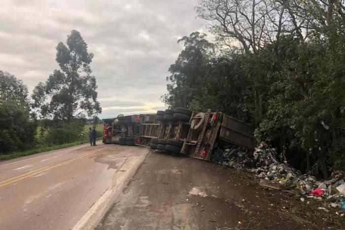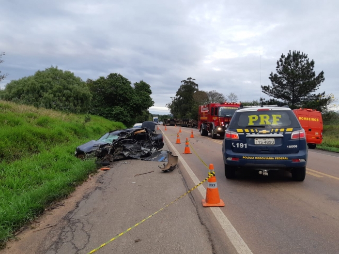 Segundo a Polícia Rodoviária Federal, a passageira do automóvel, de 40 anos, morreu nas ferragens do carro destruído. Outros três ocupantes ficaram feridos, sendo que dois em estado grave. Já o motorista do caminhão também teve ferimentos após o tombamento do veículo.